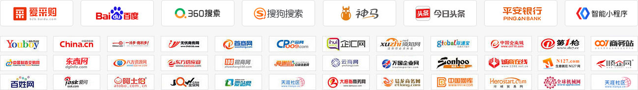 一比多 八方資源網(wǎng) K2商務(wù)網(wǎng) 首商網(wǎng) 無憂商務(wù)網(wǎng) 金屬期貨 蜘蛛客 第一槍 淘金地 萬國(guó)企業(yè)網(wǎng) 誠商在線 搜好貨網(wǎng) 供求信息網(wǎng) 如意寶建站 如意問答 最新商機(jī) 中國(guó)供應(yīng)商 卓采匯 搜貨寶 100推 企業(yè)聯(lián)合網(wǎng) 領(lǐng)商網(wǎng)
